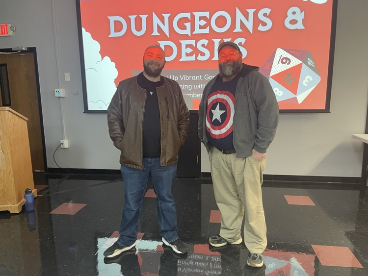 Mr. Bialecki and Mr. Williamson attended Dungeons and Desks at the KVEC office in Hazard yesterday. They spent the day learning how to incorporate roleplaying and simulations into their curriculum as well as the benefits of Game-based Learning.